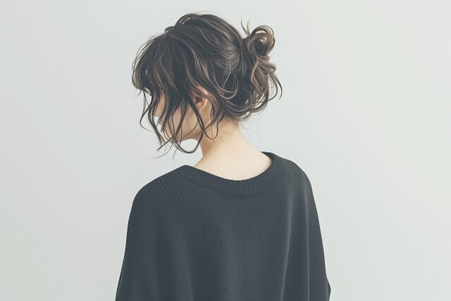 ・まとまらない日の「ヘアアレンジ」: 無理にストレートにしようとせず、くせ毛を活かしたアレンジで乗り切るのが賢い選択。低めの位置でまとめる韓国風のルーズなお団子ヘアだと、清潔感があり、洗練された印象に仕上げられる。