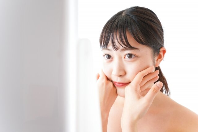 ・顔の中心から外側に向かって優しく広げます。