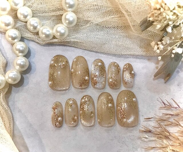 ショートネイルでもロングネイルでも、上品な華やかさを楽しむことができます。